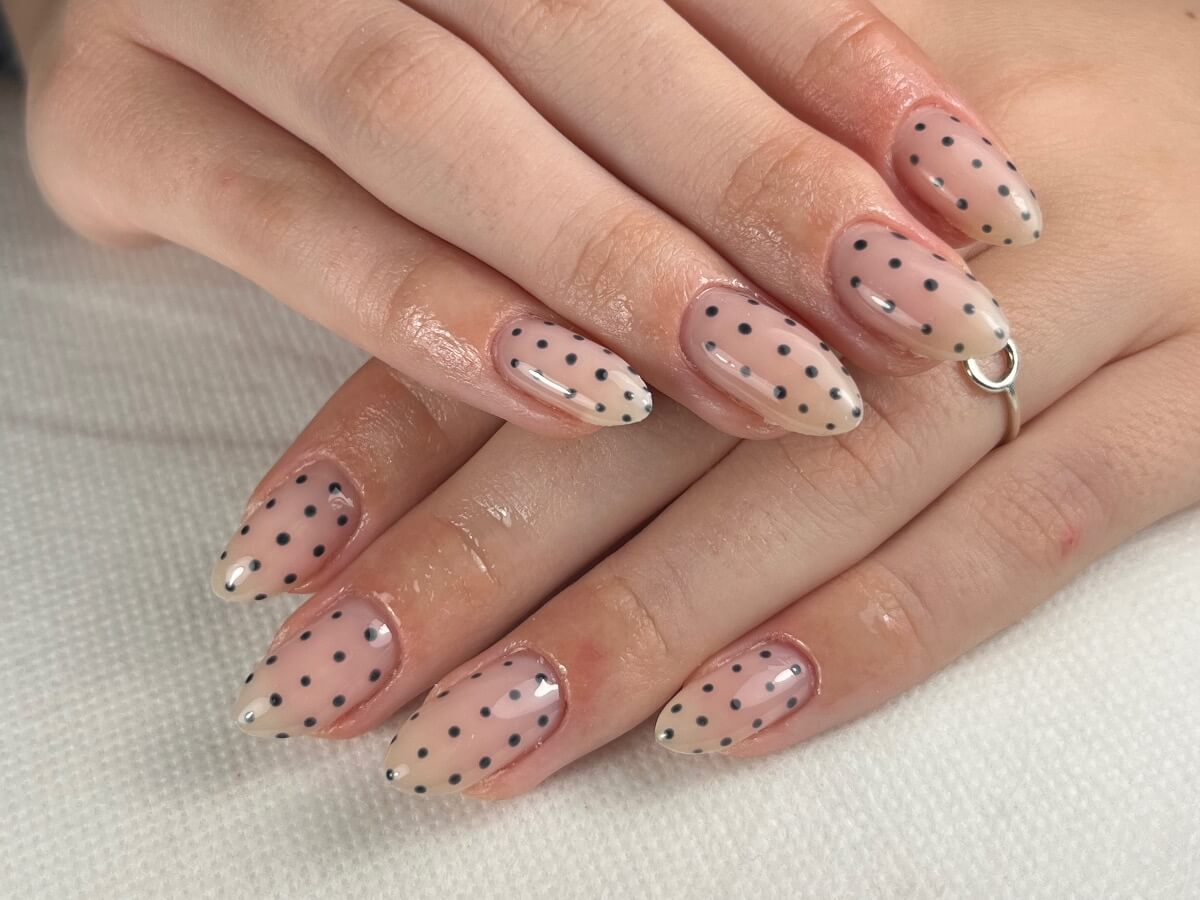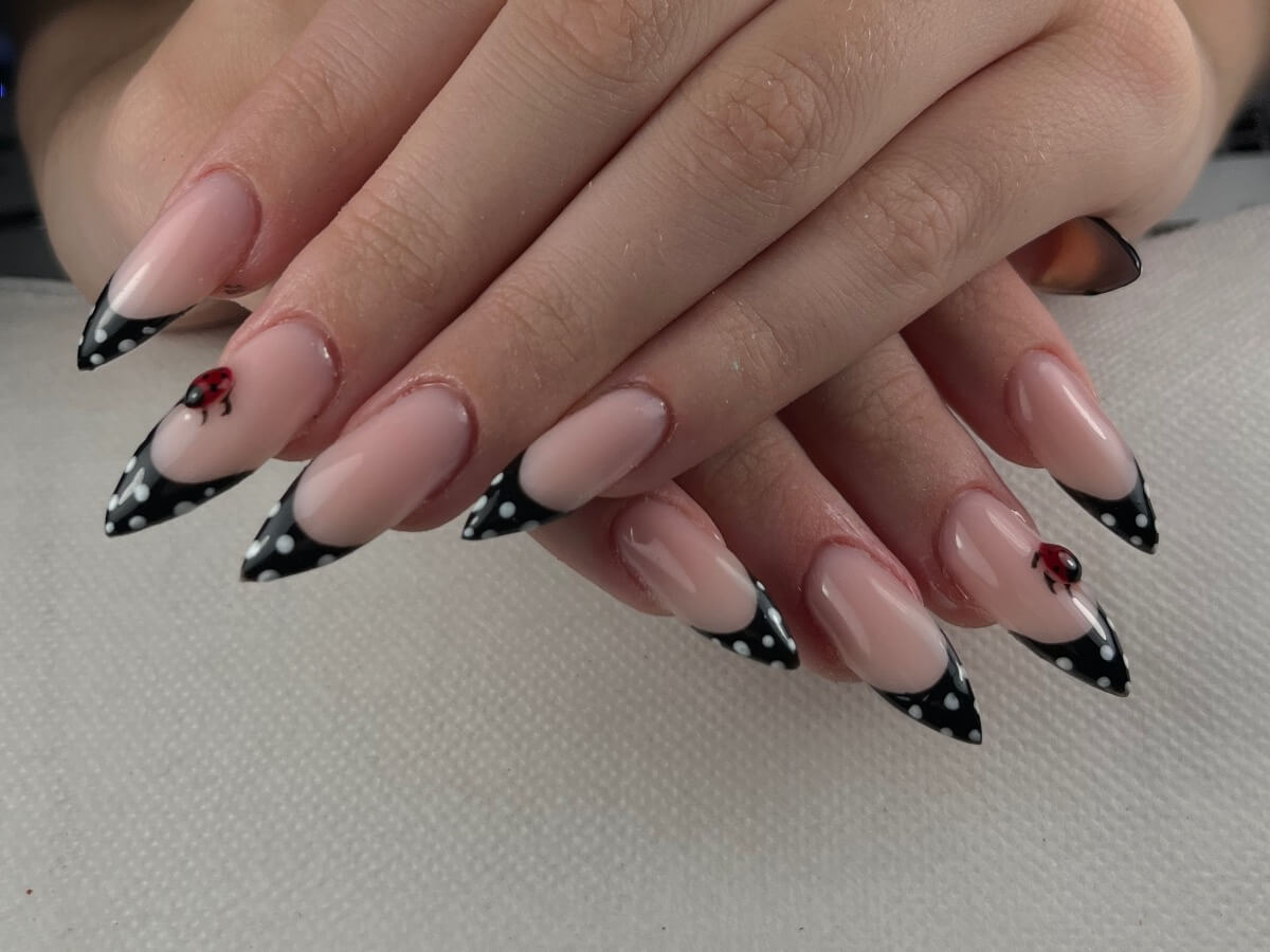‏מריחת לק ג׳ל צמודה ומדוייקת בשיטת מבנה אנטומי הכוללת מניקור רוסי משולב.